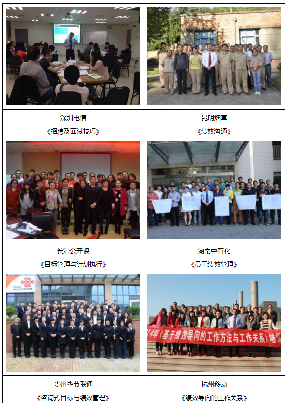 《咨询式绩效管理实战训练营》、《目标与绩效管理》、《目标管理与计划执行》、