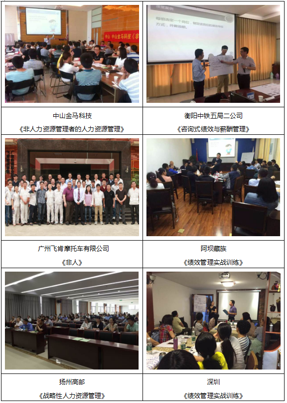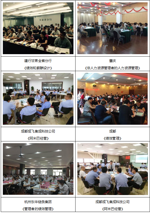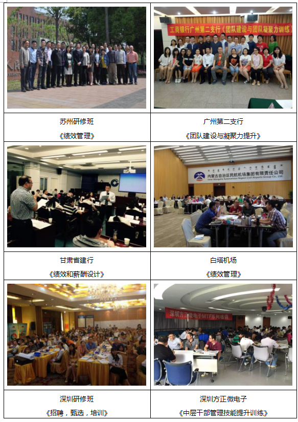 《卓越绩效管理(总裁)》、《绩效与薪酬管理》、《面试官技巧提升》、