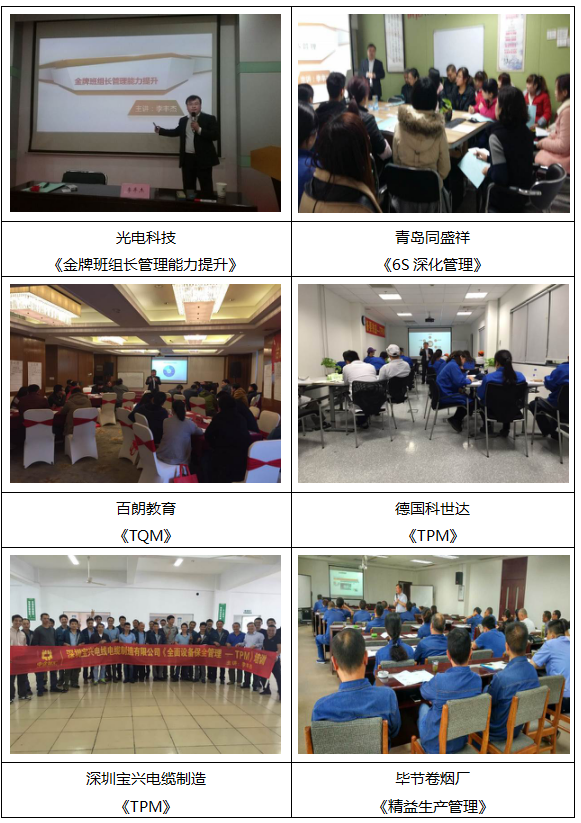 李老师2008年步入咨询培训界至今,主持辅导企业咨询项目100多个;主讲各类公开课及企业内训超过900余场,企业受训学员超过60000人次。为近百家企业提供咨询服务,囊括:电力、机械、化工、纺织、服装鞋帽、食品、汽车零部件、烟花爆竹(高危行业)等各行各业,所有企业经指导后均获得喜人成绩。